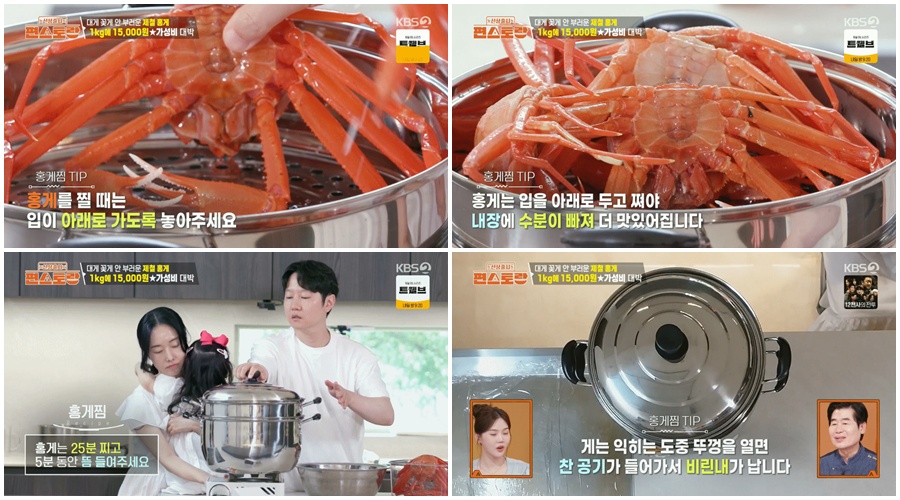(홍게는 내장에 수분이 많아, 찔 때 입이 아래로 향하도록 해서 쪄야 더 맛있어요!)