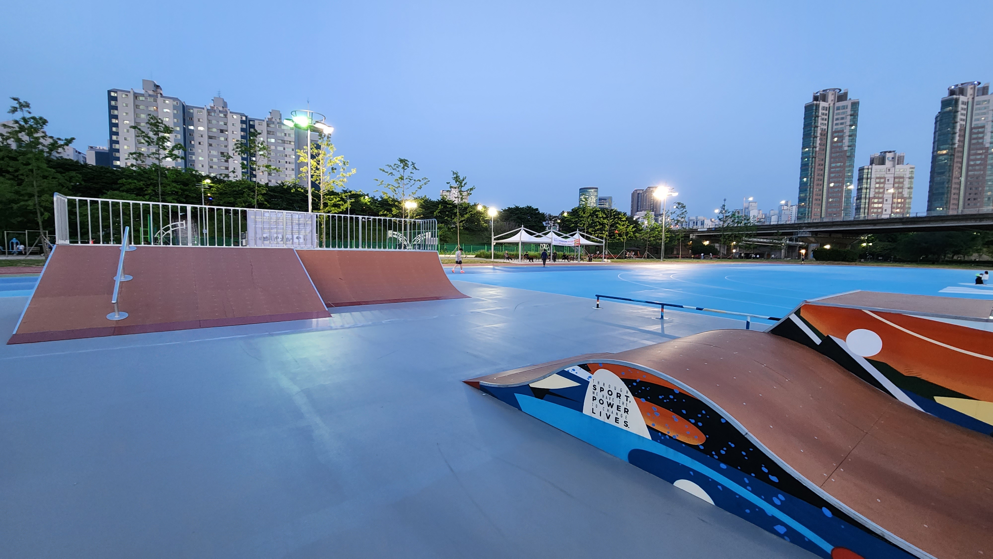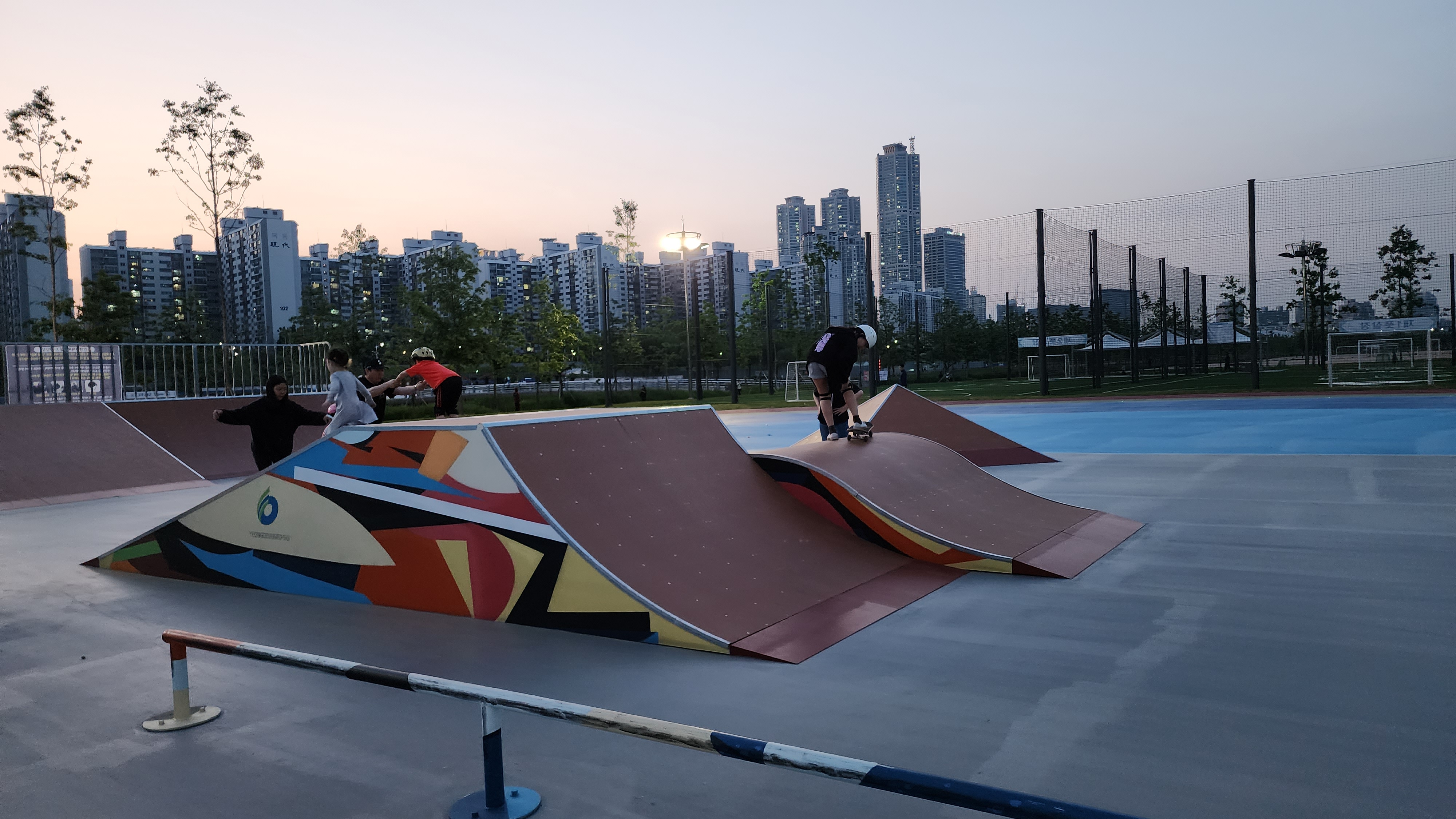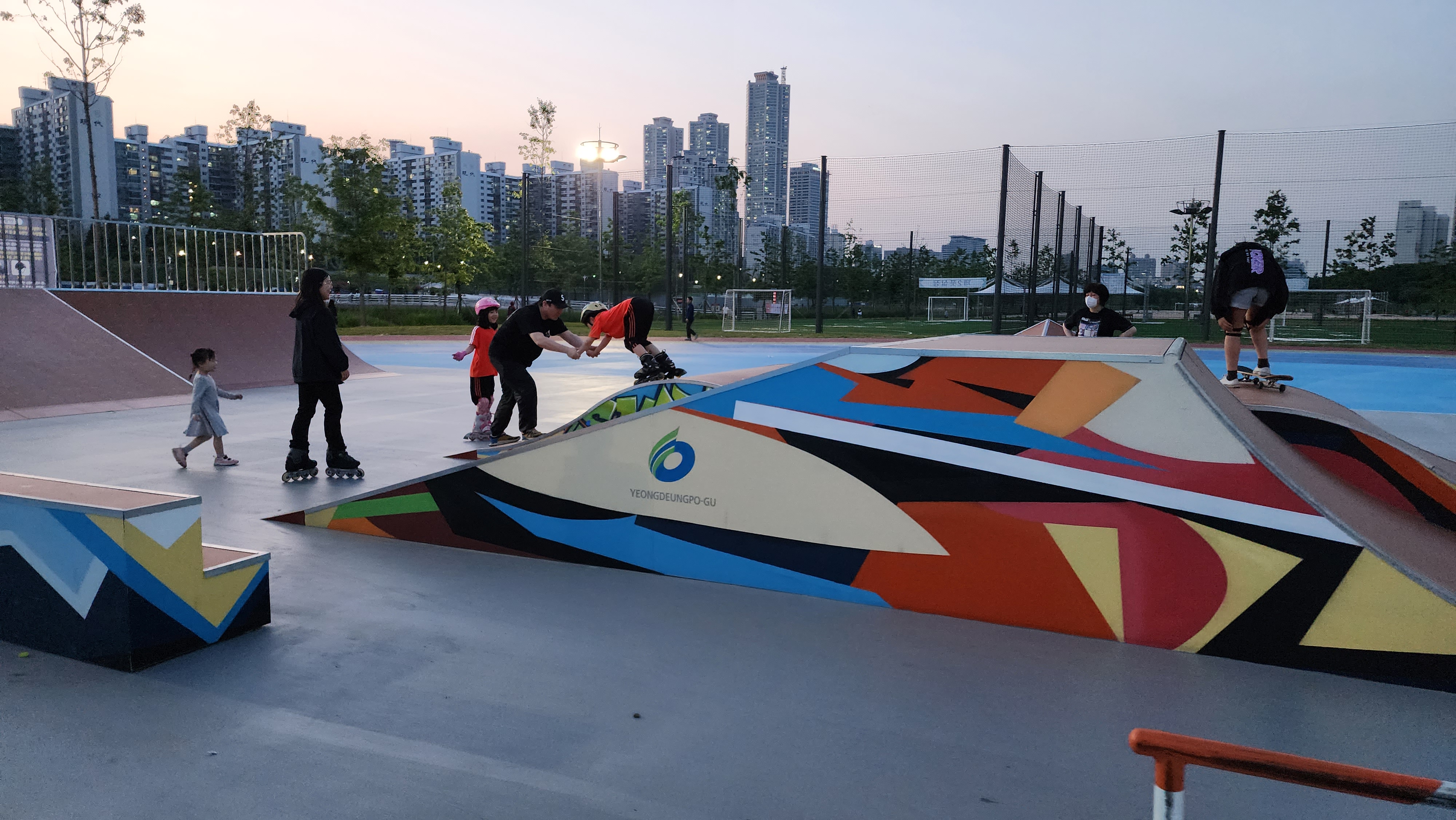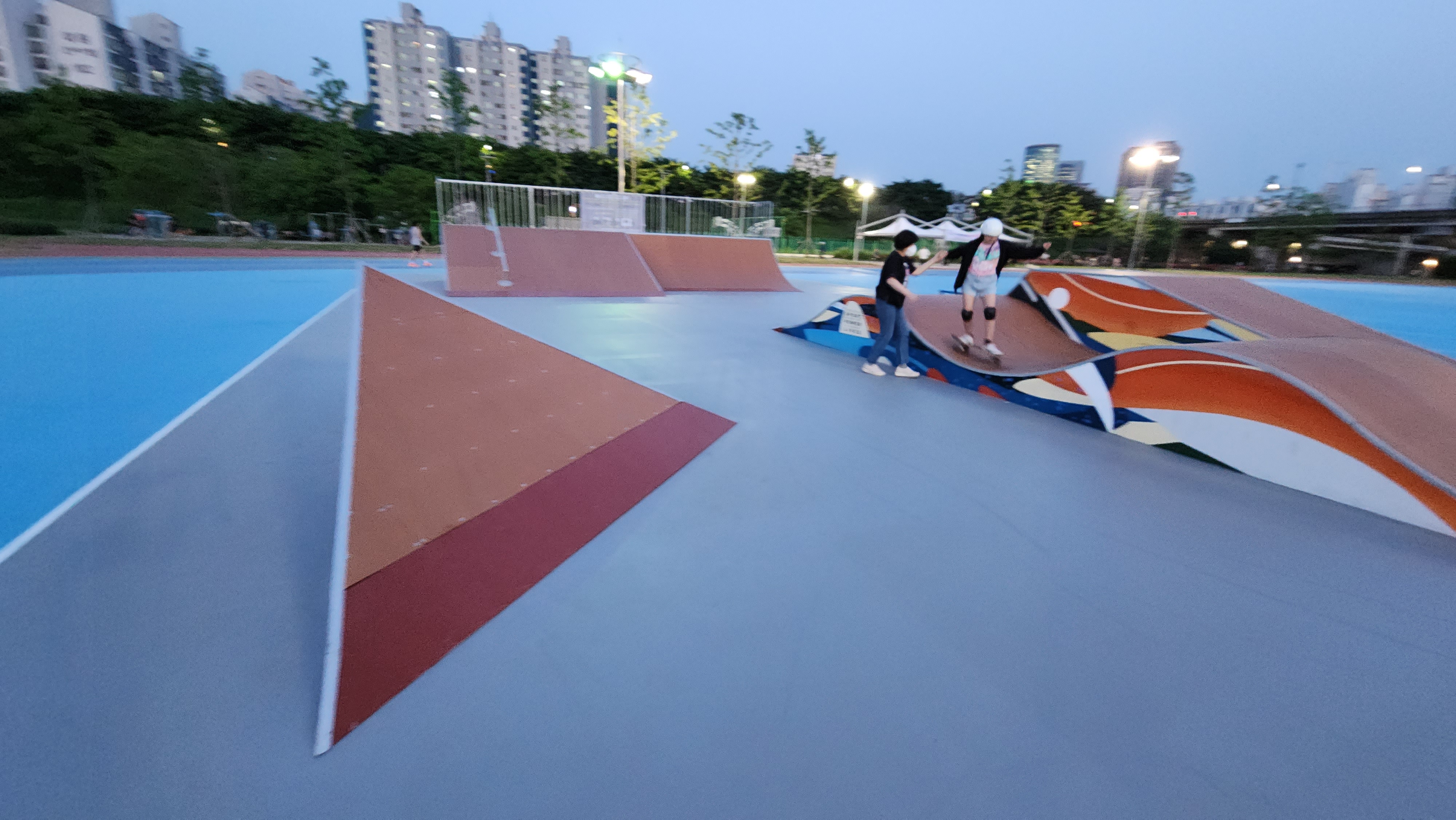 오후 7시가 넘어 사람들이 별로 없어요. 부모와 함께 온 아이들이 경사로를 이용하고 있네요.