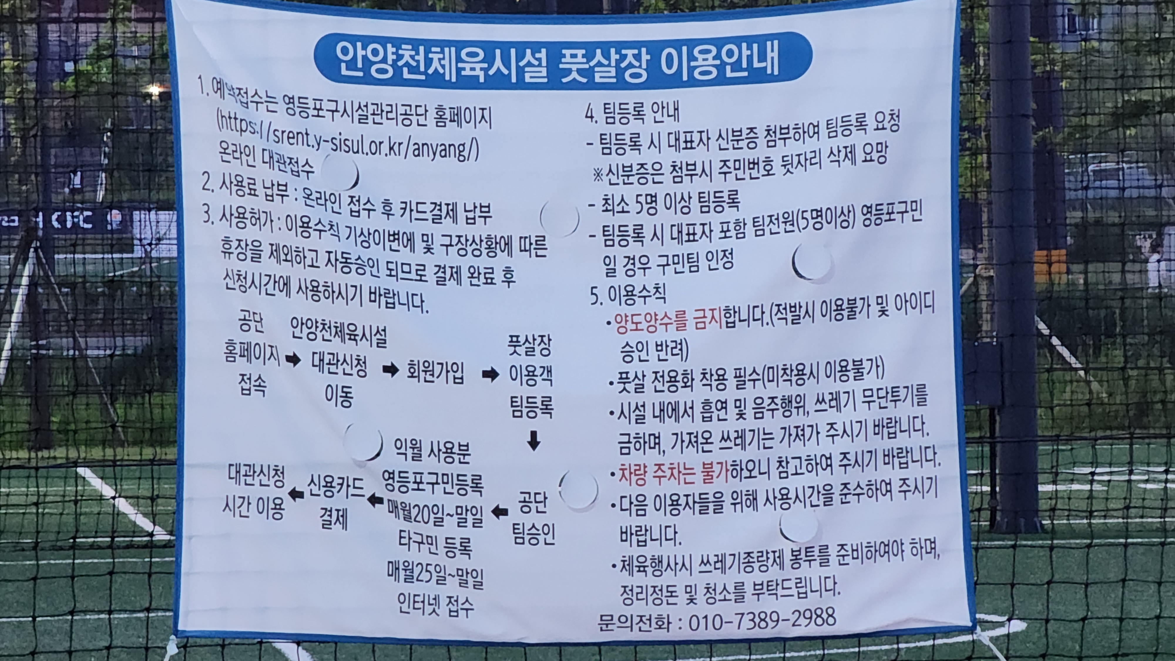 안양천 체육시설 풋살장 이용안내입니다.