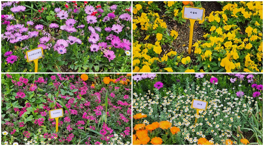 저 화단안에는 여러가지 꽃들이 이름표와 함께 피어있어요. 화단이 좀 작긴 하지만 꽃이 활짝 핀 걸 보니 계절의 여왕인 5월에 접어든 것을 느낄 수 있었어요.