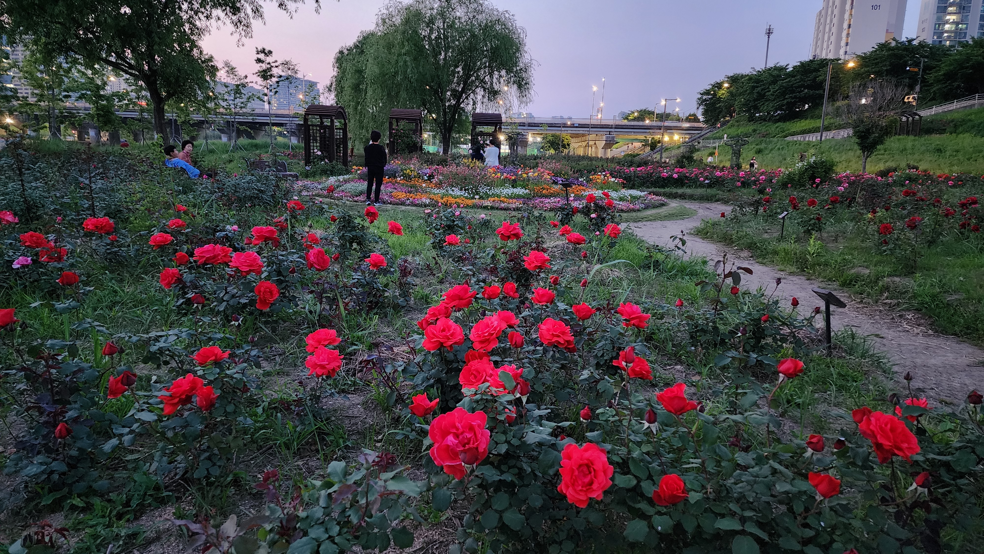 일주일전 저 가운데 화단만 화려했는데, 이젠 주변까지 장미로 뒤덮여 산책하기에도 좋네요.