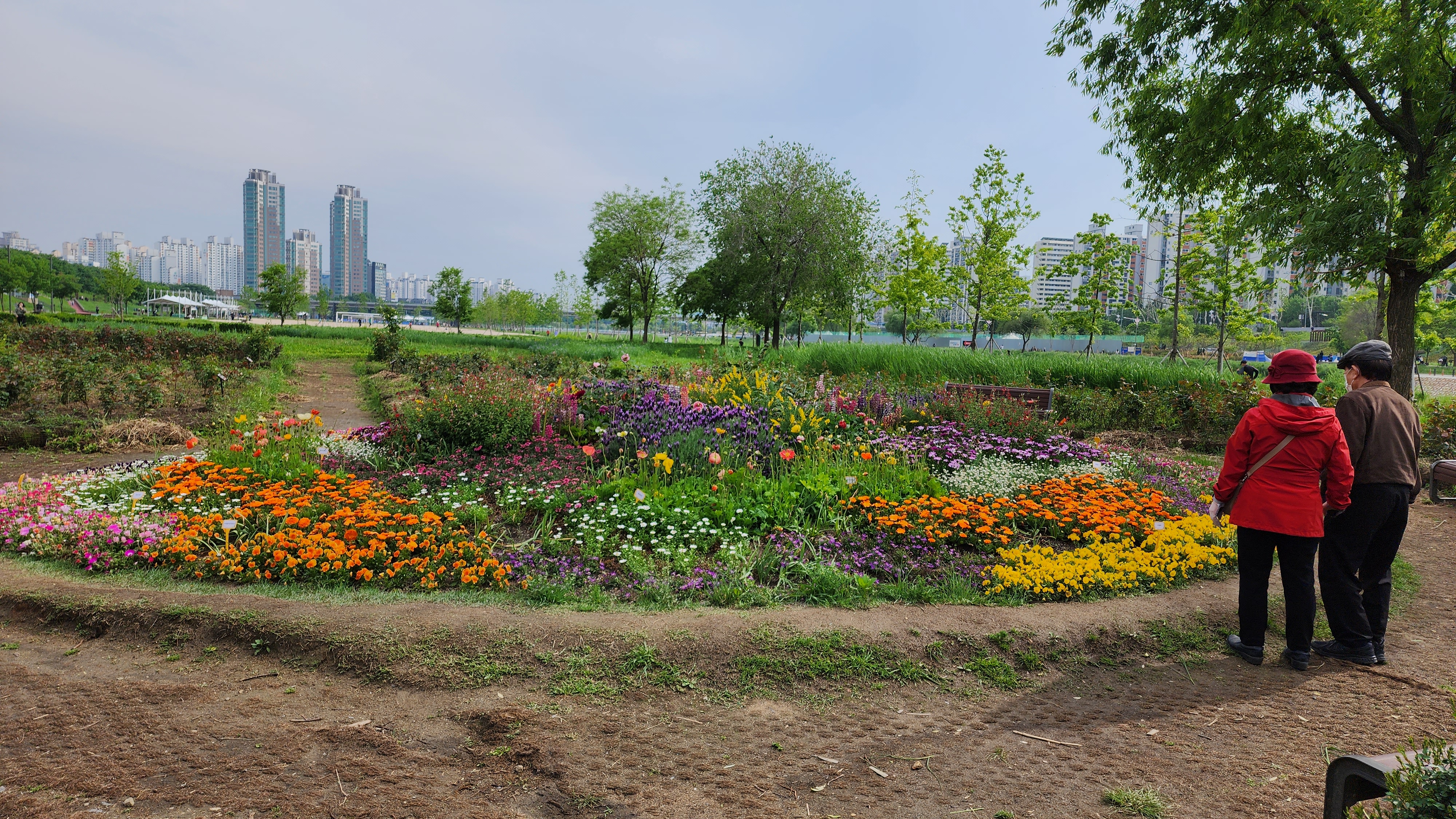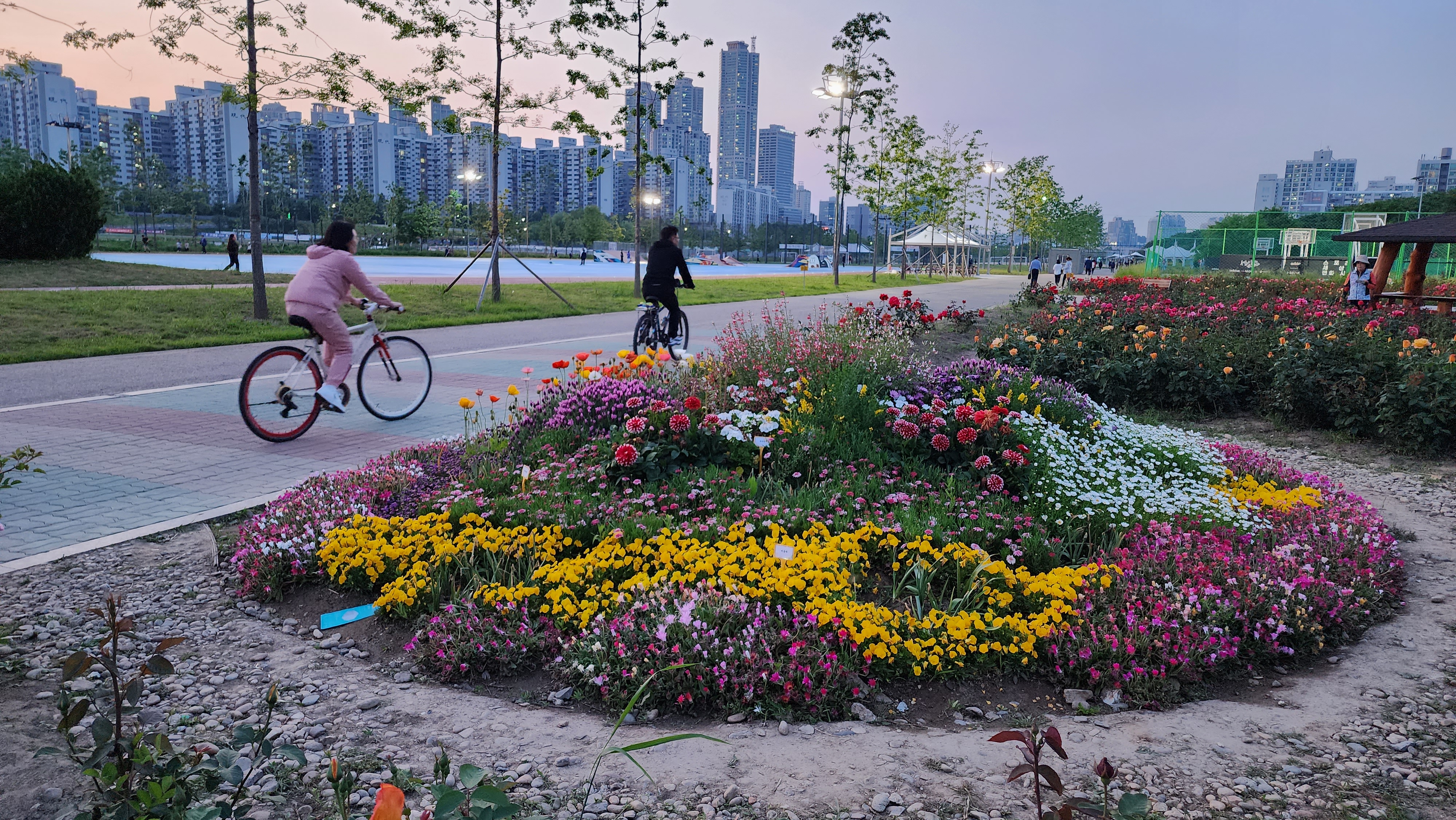 안양천 신정교-오목교 사이 문래동방면 화단에 꽃이 피었어요.