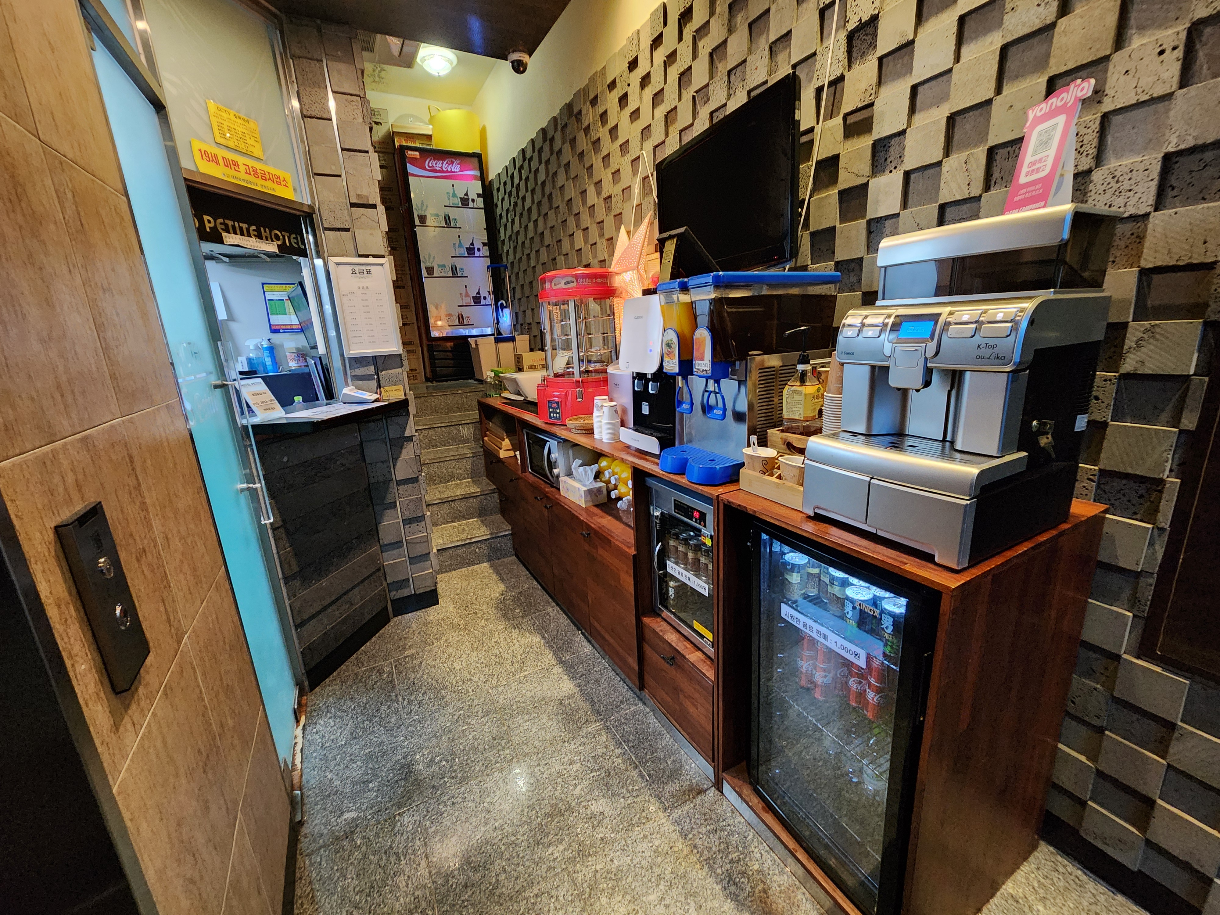 호빵은 지금 없지만 아이스티, 오렌지주스, 커피머신의 커피가 무료로 제공됩니다.